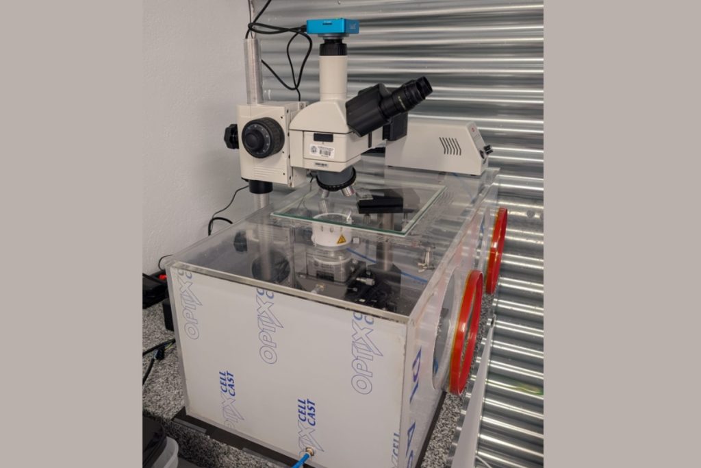 Ti:sapphire laser (60 fs, 5 kHz, 800 nm) coupled to a micro-processing stage (3 axes: XYZ). Other wavelengths available: 400 nm and 266 nm.